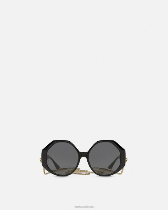 ko raksturo mirdzoši griekas tempļi, šīs drosmīgās saulesbrilles bija redzamas uz skrejceļa. Izteiksmīgajā dizainā ir biezs melns rāmis un tumši pelēkas lēcas, kas novirza ikonisko versa šarmu. saulesbrillēm ir noņemama ķēde ar grieķu rotājumu.