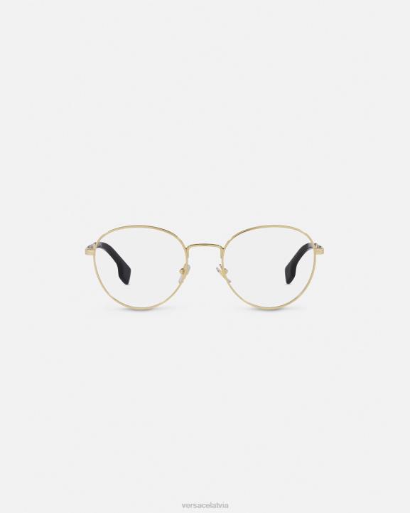 šīm apaļajām optiskajām brillēm ir plāni metāla rāmji ar iegravētu logotipu un greca rakstu pie tempļiem.