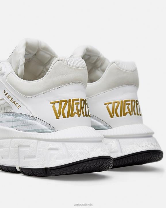 trigreca trenažieri ienes jauninājumus zīmola pastāvīgi mainīgajā estētikā. trīsdimensiju greca izpildījumi uz zolēm piedāvā iespaidīgu piezemēšanos ar "greca amortizācijas sistēmu". izsmalcinātā mājiņā uz Versace dzimto pilsētu, augšdaļās ir diskrēta Milānas koordinātu izdruka.