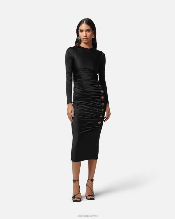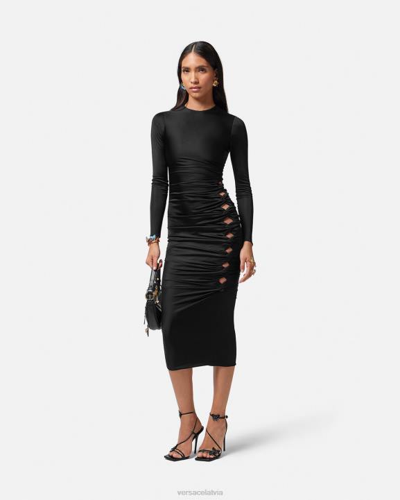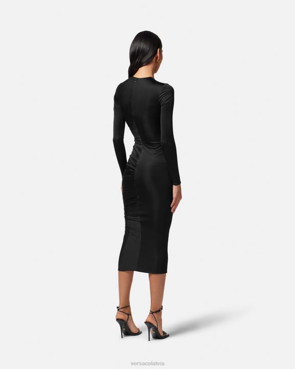 melns apģērbs Versace 806B23 sievietes mezglota midi kleita