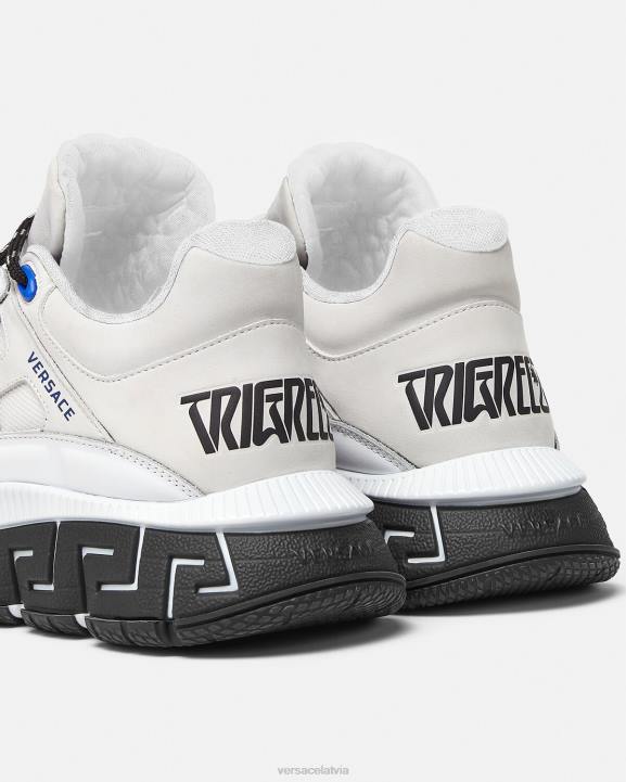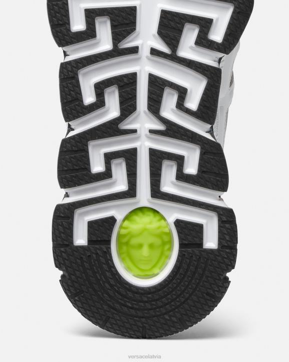 trigreca trenažieri ienes jauninājumus zīmola pastāvīgi mainīgajā estētikā. trīsdimensiju greca izpildījumi uz zolēm piedāvā iespaidīgu piezemēšanos ar "greca amortizācijas sistēmu". izsmalcinātā mājiņā uz Versace dzimto pilsētu, augšdaļās ir diskrēta Milānas koordinātu izdruka.