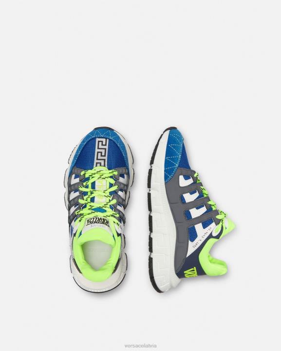 Versace iespaidīgo trigreca sporta apavu mini atveidojums, pārim ir krāsainas virsas ar trīsdimensiju greca izdarinājumiem zolēs un "greca amortizācijas sistēma" ērtai nolaišanās vietai.