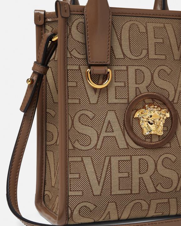 mini soma, kas izgatavota no universāla žakarda audekla un ādas apdares. šim dizainam ir la medusa aparatūra, un to var nēsāt uz pleca vai šķērsām ar regulējamu ādas siksnu.