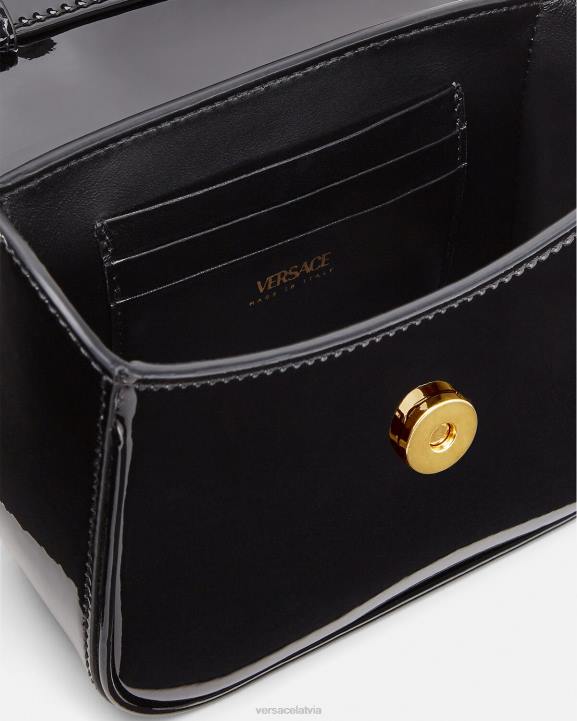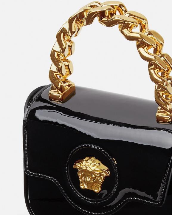 Izgatavots Itālijā no spīdīgas ādas, šim dizainam ir stingrs ķēdes augšējais rokturis. to rotā centrālā zelta toņa medūza, un tajā ir regulējama plecu siksna.