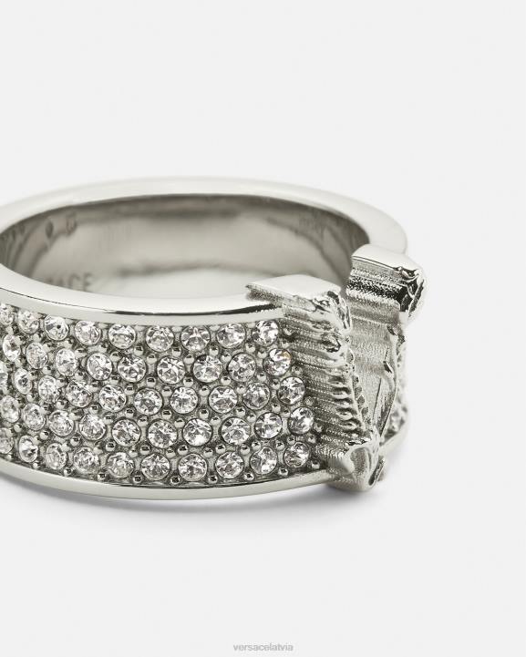 ar kristālu izrotāts joslas gredzens ar izgrieztu barocco v motīvu no virtus līnijas. Iekšpusē ir iegravēts versace logotips un izmērs. visas versace juvelierizstrādājumu preces nesatur svinu un niķeli. visi materiāli ir hipoalerģiski.