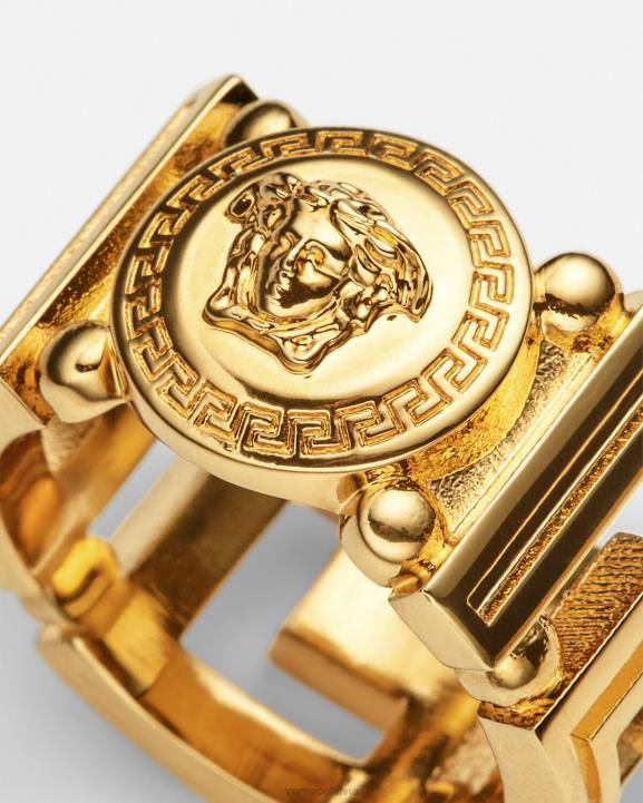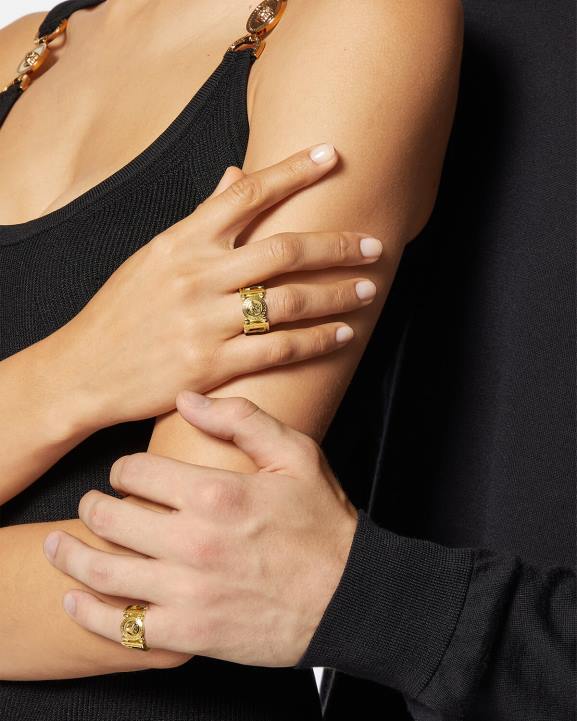 Versace raksturīgajā greca dizainā šim platjoslas gredzenam centrā ir medūzas emblēma. visi versace juvelierizstrādājumu izstrādājumi nesatur svinu un niķeli. visi materiāli ir hipoalerģiski.