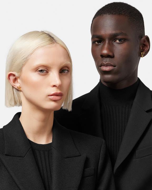 eleganti auskari ar auskariem ar mājas kodu - virtus v. baroka stila burts ir bagātināts ar akanta lapu akcentiem. visi versace juvelierizstrādājumu izstrādājumi nesatur svinu un niķeli. visi materiāli ir hipoalerģiski.