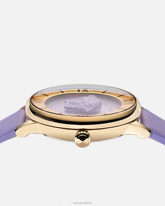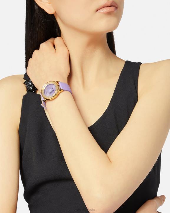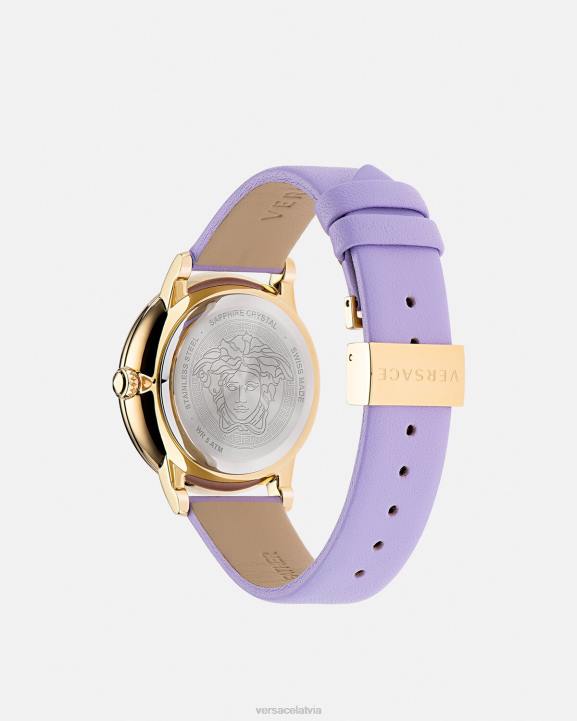 • ciparnīca: ip champagne iekšējais gredzens un ceriņkrāsas ciparnīca ar versace logotipu