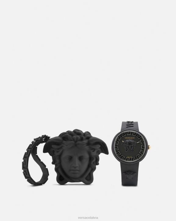 - rokassprādze: melna silikona siksniņa ar 3D medūzu; 3D versace burti; mēles sprādze