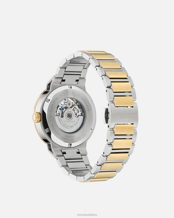 Šis elegantais pulkstenis ir ierobežota tirāžas pulkstenis, kurā ir skeleta ciparnīca ar trīsdimensiju medūzu, kas atrodas starp diviem kristāliem ar divu roku kustību sistēmu. uz iekšējās ciparnīcas ir metāla greca raksts, savukārt korpusu ierāmē iegravēts versace uzraksts pie gredzena. piederums ir pabeigts ar metāla lenti.