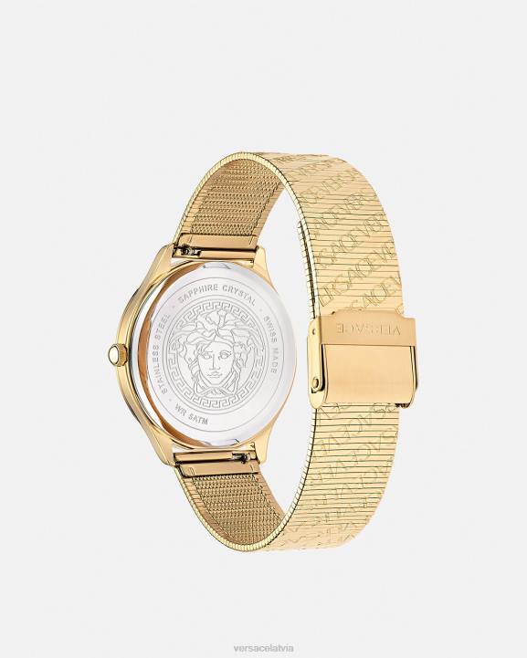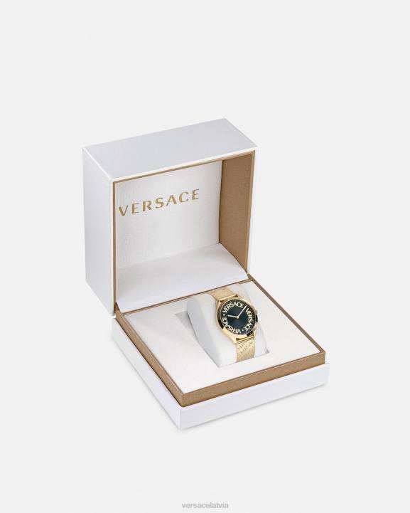 šim pulkstenim ir “versace versace logomania” gredzens uz melnas ciparnīcas ar zelta toņa detaļām. daudzpusīgo dizainu papildina plāns šampanieša futrālis un metāla sieta aproce ar reljefu versa logotipu.
