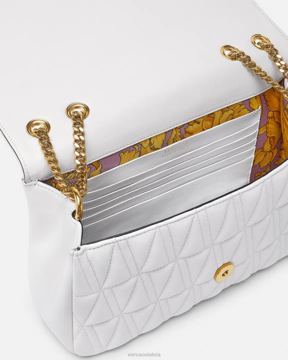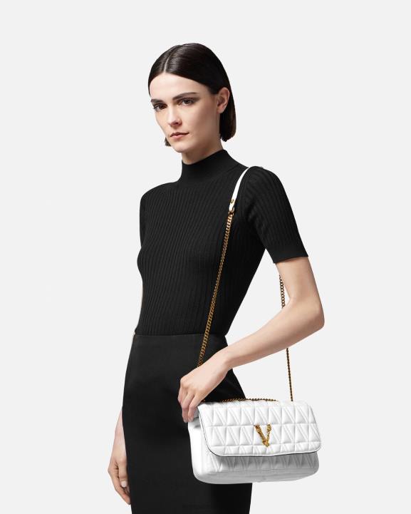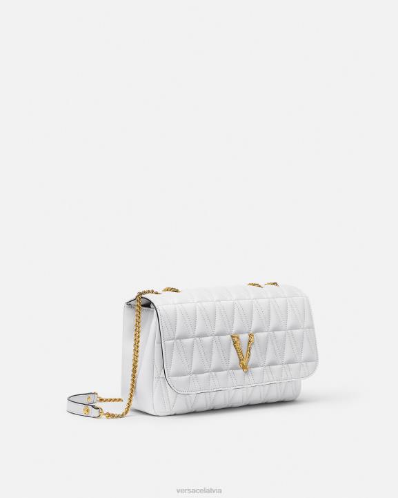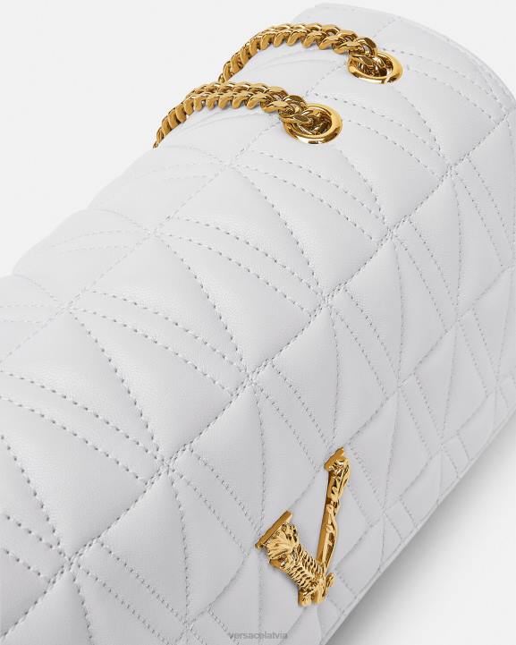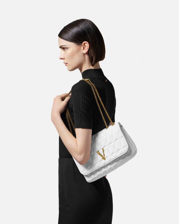 Ņemot savu nosaukumu no romiešu tikumības un drosmes dievības, virtus plecu soma ir izrotāta ar emblematisku barocco v aparatūru. Elegantajam stilam ir baroka apdrukas odere, kas izgatavota no elastīgas v-veida stepētas jērādas ādas.